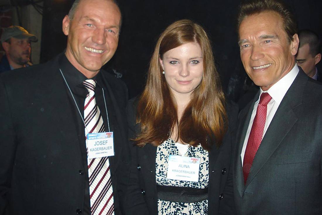 Josef Kagerbauer und seine Tochter Alina mit „The Terminator“ Arnold Schwarzenegger. He will be back!